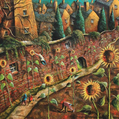 Adrian Sykes’s art is an exploration of imagination, humor, and the unique ways humans perceive the world. Sykes creates whimsical, colorful pieces that express joy while also challenging viewers with elements of isolation and surreal landscapes. Often incorporating playful distortions of scale and perspective, he’s driven by a fascination with the alchemy between artist and viewer. Outside of art, he supports causes like Oxfam, RSPCA, and Greenpeace.