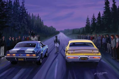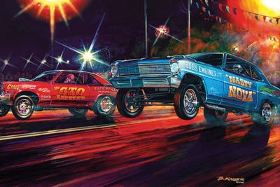 Any lover of muscle cars or hot rods will feel an affinity towards Bruce Kaiser's art. An avid racing fan himself, Bruce has been drawing, sketching and painting cars for the majority of his life. His colorful and lively scenes will take you back in time when life was simpler. Bruce resides in New York State.
