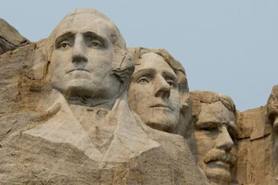 Washington, Jefferson And Roosevelt In Zoom, Mount Rushmore National Memorial, Pennington County, South Dakota, USA