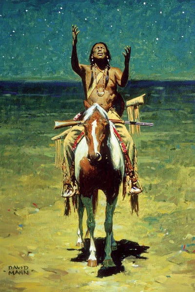 Glowing Landscapes and beautiful visions of moonlit figures radiating the simple, almost angelic postures of life have become the trademark of Southwestern Artist, David Mann. David grew up in a creative environment accompanying his father to art shows, museums and on painting expeditions. Living in Arizona and New Mexico provided opportunities of working and living with San Carolos Apaches, Navajo and Pueblo tribes which left an indelible image of Southwest culture deep in his mind.