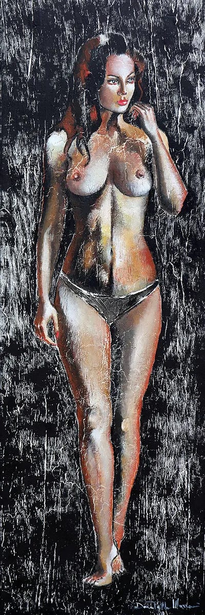 Donatella Marraoni began her magnificent journey into the world of art in ’95, when she attended the Academy of Fine Arts in Perugia, Italy graduating in 1998 with first class honors. In this same year she relocated to England where she lived for 5 years. In her paintings, the woman is the central subject: protagonist in scenes of love, awaiting, passion, pain, abandonment, desire, perversion. Donatella defines her works born out of chaos, confusion and characterized by strong lines, quick, unfinished, scratchy. The artist wants to evoke emotions, narrate situations and tell life stories using different means of communication and extremely varied between them such as oil, ink, pigments, glass, cement and coffee.