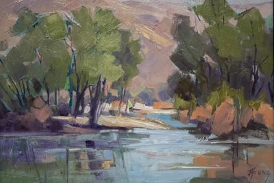 Jody Ahrens is an oil painter whose work is inspired by the rugged beauty of remote High Country meadows, lakes, and trees. Her unique style, which she calls "Edgy Impressionism," combines bold knife work with bright, imaginative colors, creating pieces that are instantly recognizable. Ahrens' landscapes evoke the serenity and power of nature with a distinctive flair. Beyond her artistic pursuits, she is passionate about animal welfare and supports the Humane Society in their efforts.
