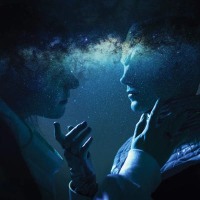 Woman And An Alien Look At Each Other