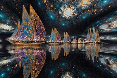 Abstract Boats On Calm Water Serene Geometric Reflections In Pastel TonesOLena Art
