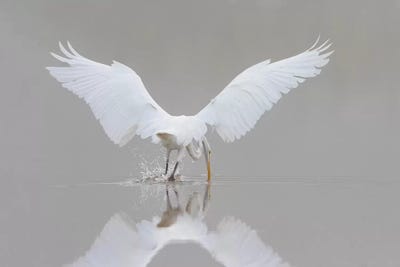 Great Egret, Ardea alba, fishing in wetland in fog, IllinoisRichard & Susan Day