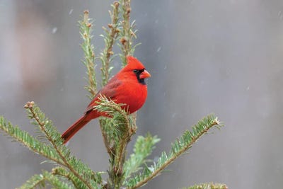 Northern Cardinal Male In Fir Tree In Snow, Marion County, Illinois.Richard & Susan Day