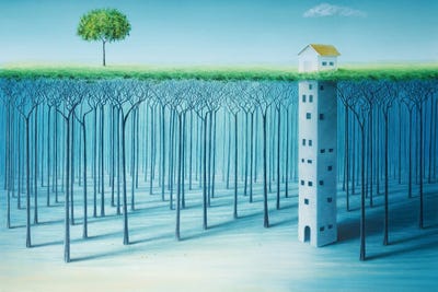 The Playful Surrealism collection is our lighthearted take on the traditional Surrealist art style, which is typically darker in theme and color. Skyscapes and soft blue hues allow a few of our favorite independent artists' senses of humor to shine through in these happy-go-lucky scenes.
