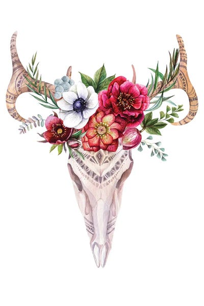 Bull Skull In Roses Garland