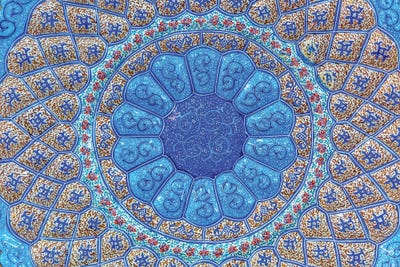 Low angle view of ceiling of a mosque with ionic tiles, Blue Mosque, Istanbul, Turkey
