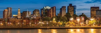 USA, Massachusetts, Boston, View of an urban skyline by the shore at nightPanoramic Images