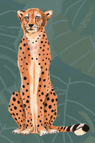 Retro Cheetah On Leaf Pattern