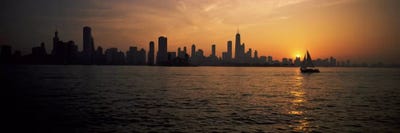 Silhouette of buildings at the waterfront, Navy Pier, Chicago, Illinois, USAPanoramic Images