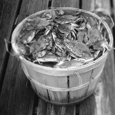 High angle view of crabs in a basket, Maryland, USA