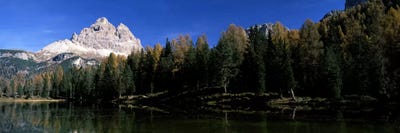 Trees at the lakeside, Lake Misurina, Tre Cime Di Lavaredo, Dolomites, Cadore, Province of Belluno, Veneto, Italy