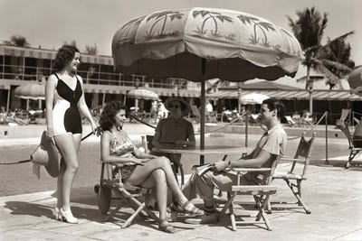 1950s Three Teenage Couples Walking On Beach Carrying Picnic Basket And CoolerVintage Images