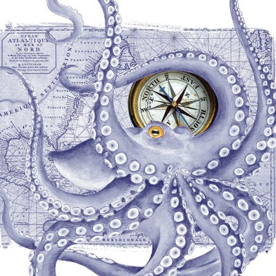 Purple Octopus Vintage Map Compass