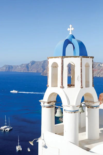 High angle view of a church with blue dome, Oia, Santorini, Cyclades Islands, GreecePanoramic Images