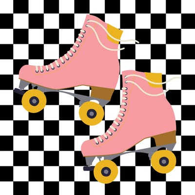 Pink Roller Skates On Checkered Pattern