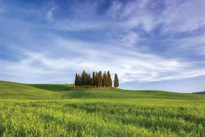 Group Of Cypress Trees On A Knoll, San Quirico D'Orcia, Tuscany, Italy