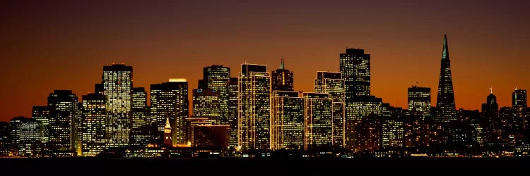Skyscrapers lit up at sunset, Willamette River, Portland, Oregon, USA - Canvas Print