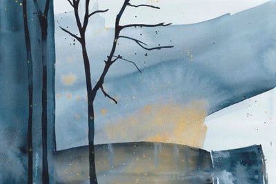 Abstract Mountainscape, Blue Watercolor