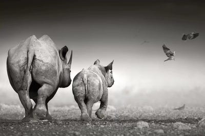 Black Rhino Cow With Calf