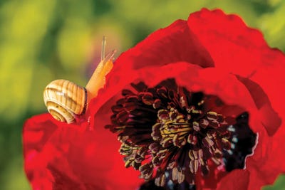 Snail Crawling Over Poppy
