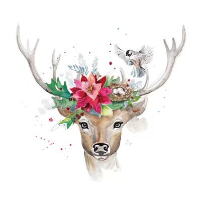 Woodland Deer With Bird