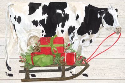 Christmas On The Farm I - Cow with Sled