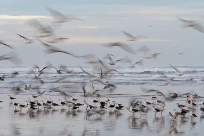 Africa, Morocco, Casablanca. Flurry Of Seagulls On Ocean Shore.Jaynes Gallery