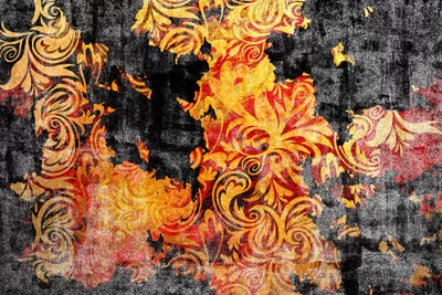 Flourished Floral in Gold & Red Patterns