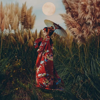 Geisha In A Field Of Pampas Grass