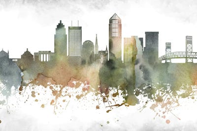 Jacksonville II Skyline In Watercolor Background