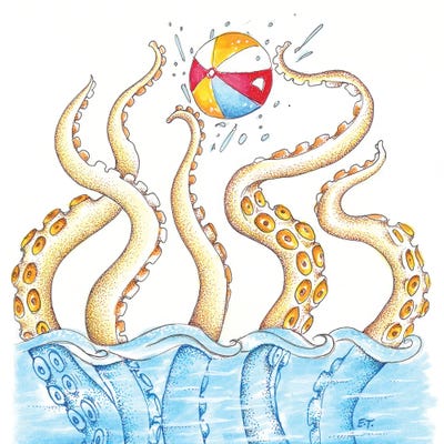 Octopus Playing Beach Ball Square