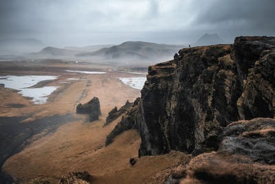 Dyrholaey Cliffs And Photographer On Clifftop, Iceland