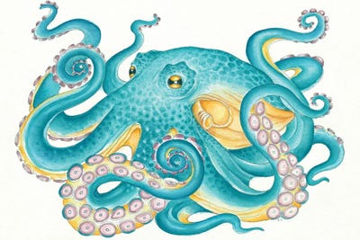 Octopus Teal Tentacles Watercolor Art