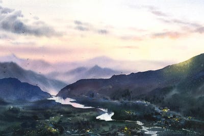 Blue Mountain Watercolor Landscape