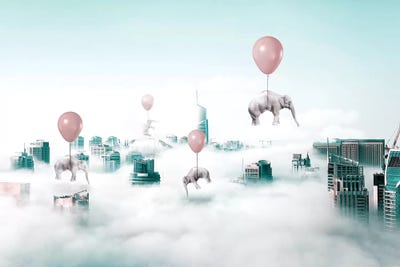 Elephant And Dog Are Flying On A Cloud