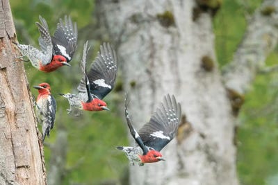 WA. Multiple images of a Red-breasted Sapsucker flying from nest in a red alder snagGary Luhm
