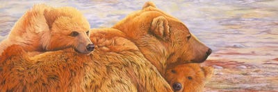 A Brown Bear Mother And Cubs Walks Across Mudflats In Kaguyak Bay, Katmai Coast, AlaskaHugh Rose
