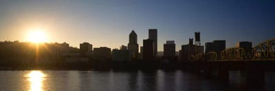 Buildings along the waterfront at sunset, Willamette River, Portland, Oregon, USAPanoramic Images