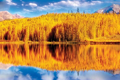 Reflections Of Golden Aspen Trees Over A Fairplay, Colorado Autumn SceneOLena Art