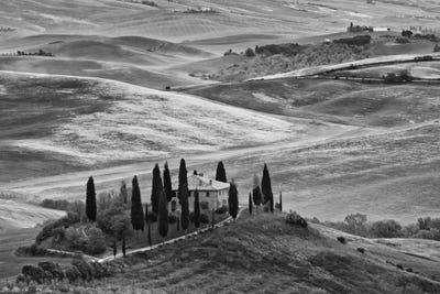 Italy, Tuscany. Lone cypress tree on flower-covered hillside IJaynes Gallery