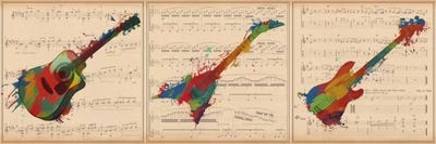 Multi-Color Guitar Trio: Acoustic Guitar, Electric Guitar, Bass Guitar PanoramicUnknown Artist