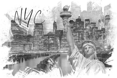 New York Panoramic Skyline Cityscape (Statue of Liberty - Sunset)Unknown Artist