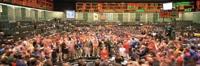 Large group of people on the trading floor, Chicago Board of Trade, Chicago, Illinois, USAPanoramic Images