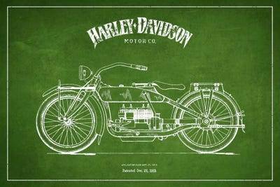 Harley-Davidson Motorcycle Fender Patent Application Blueprint (Navy)Aged Pixel