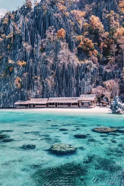 Boat In Lagoon With Mountain In The Background, El Nido, Palawan, PhilippinesPanoramic Images