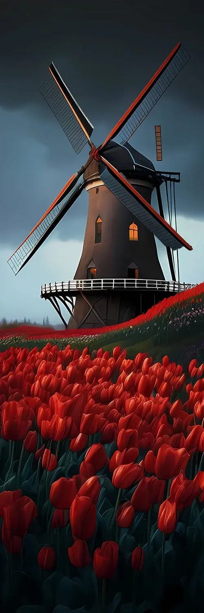 Tulips In Bloom Near The Mill.