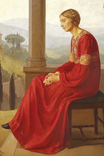 A Woman In A Red Dress Sitting On A Terrace In An Italian Landscape, 1909